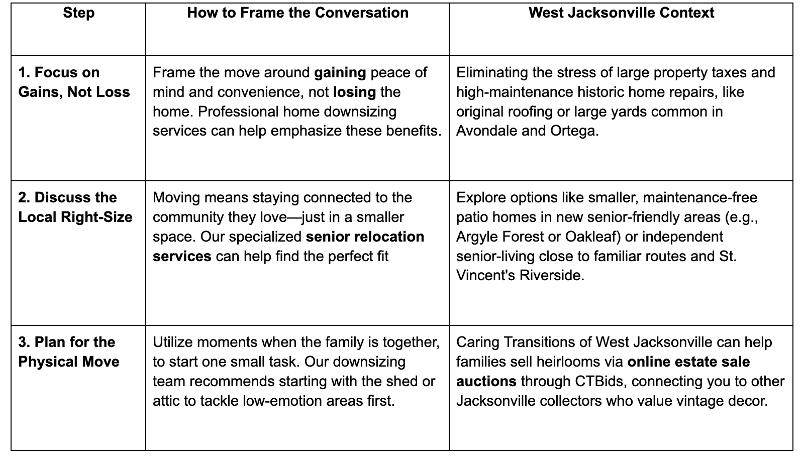 Downsizing in West Jacksonville, FL – Local Tips from Caring Transitions